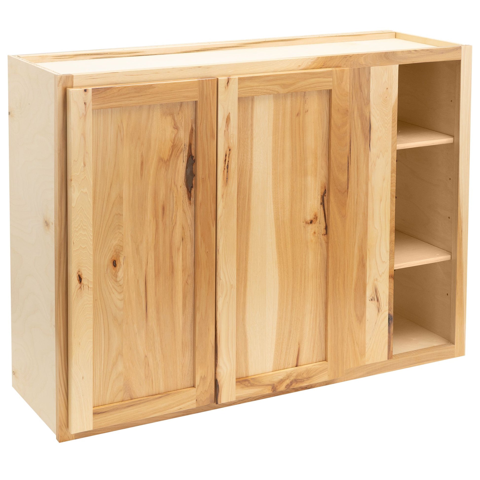 When you think of remodeling, the first thing you’ll invest in are cabinets. It’s easy for homes to get cluttered and messy and sometimes it can be hard to backtrack from the mess. Don’t get overwhelmed, let QuickLOCK Cabinets help you out and give you wall cabinets that will make your life easier. Our Rustic Hickory Blind Corner Wall Cabinet comes with two 1/2” shelves so you’ll have ample storage space for all your belongings, so get excited to organize to your heart’s content. And with a water-resistant UV-Coated interior, you can protect your cabinet from moisture damage while also preserving the beauty of the hickory wood exterior. Invest in a corner cabinet that will give you all the space you need, even some hidden storage, while also elevating the beauty of your home. As an added touch of elegance, we utilize soft close hardware so you can create a peaceful home. Enjoy a gentle and quiet closing of the doors every time without worrying about the wear and tear on the hinges, slamming doors, or loud noises. Pride yourself on owning an American made cabinet with a touch of quality Amish craftsmanship.